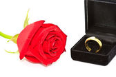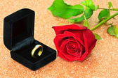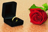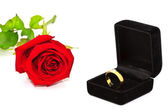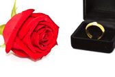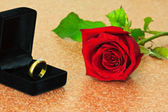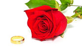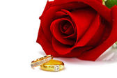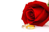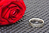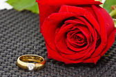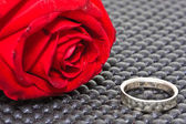 Pierścienie na tle róż