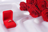 Pierścienie na tle róż