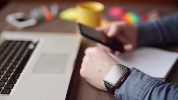 Blisko dwie osoby, para za pomocą smartfona, laptopa, smartwatera, edukacji i koncepcji biznesu, komunikacja podczas samoizolacji