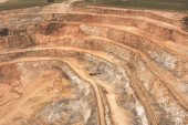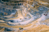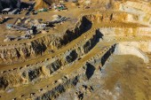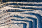 Górnictwo z góry. Tarasy przemysłowe w kopalni odkrywkowej. Widok z lotu ptaka. Kopalnia Dolomitu. Przemysł wydobywczy. Gigantyczne maszyny koparkowe.