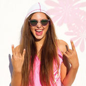 piękna Młoda blondynka w Rastafarianin kapelusz