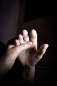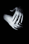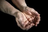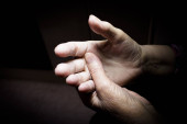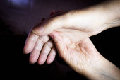 Ręce starszej kobiety robiącej sobie masaż. Fizjoterapia manualna