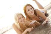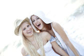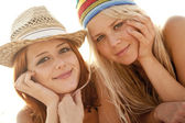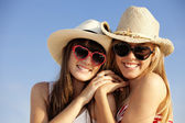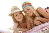 dwa piękne młode dziewczyny w bikini na plaży