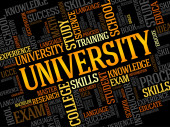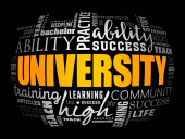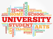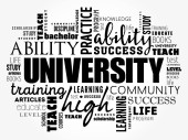 Uniwersytet słowo chmura collage, tło koncepcji edukacji