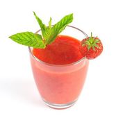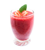 Świeży koktajl truskawkowy z plastrami wyizolowanymi na białym