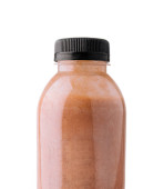 Dietetyczne menu, program diety i koncepcja gastronomii soków - Detox superfood butelka smoothie do utraty wagi oczyścić świeże brązowe smoothie w butelce na czarnym tle