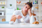 Zdjęcie "zaniepokojony chory człowiek z gorączką patrząc na termometr w kuchni podczas śniadania na temat samoizolacji " może być wykorzystywane do celów osobistych i komercyjnych zgodnie z warunkami zakupionej licencji Royalty-free. Obraz jest dostępny do pobrania w jakości wysokiej rozdzielczości do 5760x3840.