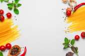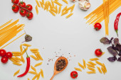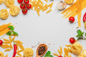 Zdjęcie "Widok z góry surowy włoski makaron. Zamknij się.." może być wykorzystywane do celów osobistych i komercyjnych zgodnie z warunkami zakupionej licencji Royalty-free. Obraz jest dostępny do pobrania w jakości wysokiej rozdzielczości do 5760x3840.