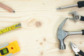 Narzędzie elektryczne na drewnianym tle z przestrzenią do kopiowania. Widok góry. Układy płaskie