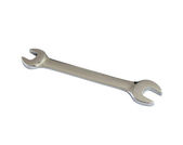 Klucz zbliżeniowy leżący na białej płaszczyźnie pod kątem. Izolat klucza stalowego na białym tle