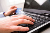 ręce trzyma karty kredytowej i laptopa. płytkie dof