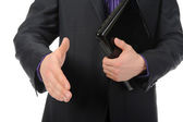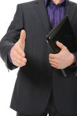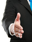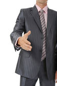 człowiek w garniturze trzyma rękę na uścisk dłoni.