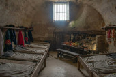 Stare średniowieczne łóżko, detale historii, wnętrze domu