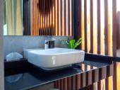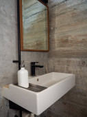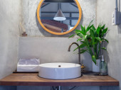 Zdjęcie "Biały czysty ceramiczny zlewozmywak i kran na zabytkowym drewnianym stole i zabytkowe lustro na białym ceglanym tle ściany w stylu pionowym." może być wykorzystywane do celów osobistych i komercyjnych zgodnie z warunkami zakupionej licencji Royalty-free. Obraz jest dostępny do pobrania w jakości wysokiej rozdzielczości do 5760x3840.