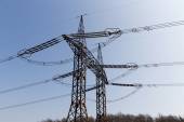 Linia energetyczna i czyste niebo w prowincji Saragossa, Aragon w Hiszpanii.