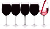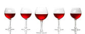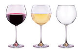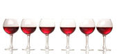 Zestaw kieliszków do czerwonego wina na białym tle. Pojęcie winiarstwa i działalności restauracyjnej