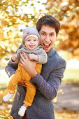 małe dziecko siedzi w procy ergorace ojciec, niosąc dziecko w pozycji pionowej, bez obciążenia kręgosłupa
