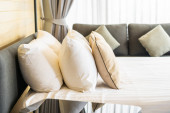 Zdjęcie "Biała wygodna poduszka na dekoracji łóżka wnętrze pokoju w ośrodku hotelowym" może być wykorzystywane do celów osobistych i komercyjnych zgodnie z warunkami zakupionej licencji Royalty-free. Obraz jest dostępny do pobrania w jakości wysokiej rozdzielczości do 5760x3840.