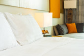 Biała wygodna poduszka na dekoracji łóżka wnętrze pokoju w ośrodku hotelowym