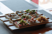 Zdjęcie "szklanka piankowego piwa i talerz z przekąskami: krewetki, pierścienie kalmarów, frytki, grzanki żytnie, oliwki na drewnianym tle" może być wykorzystywane do celów osobistych i komercyjnych zgodnie z warunkami zakupionej licencji Royalty-free. Obraz jest dostępny do pobrania w jakości wysokiej rozdzielczości do 5760x3840.