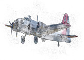 Amerykański myśliwiec samolot rysunek ilustracja sztuka vintage