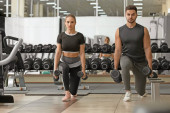 Zdjęcie "Sportowy trening młodych par z hantlami na białym tle" może być wykorzystywane do celów osobistych i komercyjnych zgodnie z warunkami zakupionej licencji Royalty-free. Obraz jest dostępny do pobrania w jakości wysokiej rozdzielczości do 5760x3840.