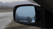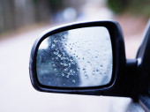 Jazda samochodem w śnieżny dzień - lusterko wsteczne