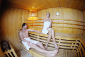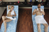 Młoda para zrelaksować w centrum odnowy biologicznej i spa leczenia