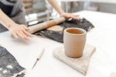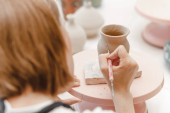 Zdjęcie "rzemieślnik pracujący z wyrobem ceramicznym na sprzedaż w jej sklepie. Koncepcja biznesu garncarskiego dla koncepcji artysty" może być wykorzystywane do celów osobistych i komercyjnych zgodnie z warunkami zakupionej licencji Royalty-free. Obraz jest dostępny do pobrania w jakości wysokiej rozdzielczości do 5760x3840.