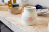 rzemieślnik pracujący z wyrobem ceramicznym na sprzedaż w jej sklepie. Koncepcja biznesu garncarskiego dla koncepcji artysty
