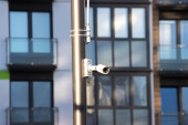 Zdjęcie "Kamera CCTV na elewacji nowoczesnego biurowca na ulicy, ochrona w roku. Tajne ujęcie tego, co się dzieje. nowoczesne technologie i wyposażenie." może być wykorzystywane do celów osobistych i komercyjnych zgodnie z warunkami zakupionej licencji Royalty-free. Obraz jest dostępny do pobrania w jakości wysokiej rozdzielczości do 5760x3840.
