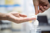 sterylizacja rękawic nitrylowych rozpylaczami przeciwwirusowymi i roztworami alkoholowymi zbliżenie