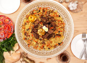 Zdjęcie "Pilaf uzbecki z jagnięciną i sałatką pomidorową" może być wykorzystywane do celów osobistych i komercyjnych zgodnie z warunkami zakupionej licencji Royalty-free. Obraz jest dostępny do pobrania w jakości wysokiej rozdzielczości do 5760x3840.