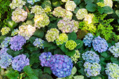 Zdjęcie "Kwietnik z pięknym multi-kolorowe kwiaty hortensji zbliżenie" może być wykorzystywane do celów osobistych i komercyjnych zgodnie z warunkami zakupionej licencji Royalty-free. Obraz jest dostępny do pobrania w jakości wysokiej rozdzielczości do 5760x3840.