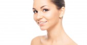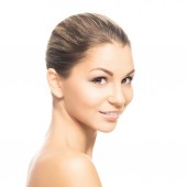 portret młodej kobiety nagie pozowanie w piękny makijaż