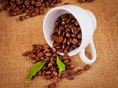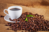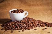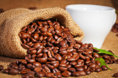 Puchar i arabica kawa na worek z tkaniny