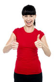 Atrakcyjna dojrzała kobieta w czerwonej koszulce na białym tle
