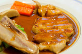 Grillowany kurczak z sosem sojowym na białym talerzu
