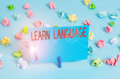 Znak tekstowy pokazujący Zbieranie Danych. Conceptual photo Gromadzenie i pomiar informacji na temat zmiennych zainteresowania Kolorowe pogniecione papiery puste przypomnienie niebieski podłoga tło clothespin.
