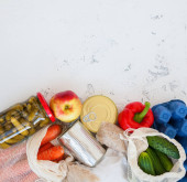 Zdjęcie "Zestaw różnych produktów do dawstwa. Konserwy, ryż, jajka, owoce i warzywa na białym tle, widok z góry, przestrzeń do kopiowania" może być wykorzystywane do celów osobistych i komercyjnych zgodnie z warunkami zakupionej licencji Royalty-free. Obraz jest dostępny do pobrania w jakości wysokiej rozdzielczości do 5760x3840.