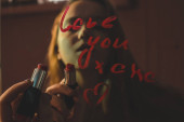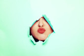 Dziewczyna z dredami, warkoczykami tańczącymi, jasnym neonowym zdjęciem na okładce albumu muzycznego, tańcem, imprezą, zaproszeniem. Jasna dziewczyna, czerwono-niebieska inwersja kolorów. Modelka tańcząca w okularach, klub nocny