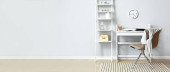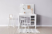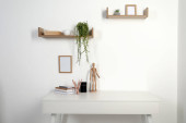 Stylowe miejsce pracy w pobliżu białej ściany w pokoju
