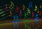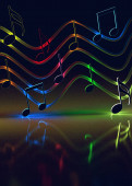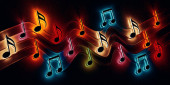 Abstrakcyjne tło muzyczne, nuty i symbole do kolędy.Song and melodia.3D ilustracja na festiwale muzyczne i koncerty jazzowe i popowe. Rozrywka rekreacyjna i nocna.