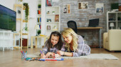 Zdjęcie "Wesoła dziewczynka i jej matka leżące na podłodze" może być wykorzystywane do celów osobistych i komercyjnych zgodnie z warunkami zakupionej licencji Royalty-free. Obraz jest dostępny do pobrania w jakości wysokiej rozdzielczości do 5760x3840.
