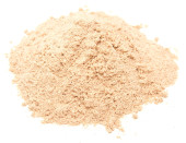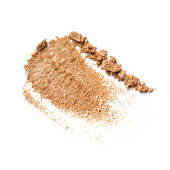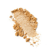 Płaskie ułożenie pędzla. Złamane, błyszczące, beżowe cienie do powiek jako próbka kosmetycznego produktu kosmetycznego izolowanego na białym tle