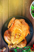 całe pieczone kurczaki, smażone mięso świąteczne nakrycie stołu Menu koncepcja. tło żywności. top view kopiuj miejsce na tekst keto lub dietę paleo