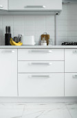 Zdjęcie "Białe lakierowane fasady kuchni na wygodnej kuchni. Nowoczesny biały kuchnia czyste wnętrza." może być wykorzystywane do celów osobistych i komercyjnych zgodnie z warunkami zakupionej licencji Royalty-free. Obraz jest dostępny do pobrania w jakości wysokiej rozdzielczości do 5760x3840.