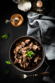 gulasz Boeuf bourguignon klasycznej francuskiej wołowiny na niebieski tabeli z