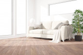 Piękne boho wnętrze korytarza w przytulnym mieszkaniu. Minimalistyczny śródziemnomorski styl i akcesoria projektowe. Stylowy wystrój wnętrz.