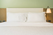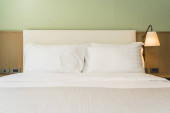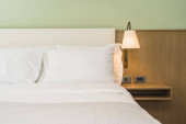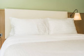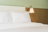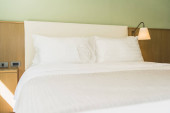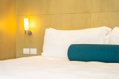 Biała wygodna poduszka na łóżku dekoracji wnętrza sypialni